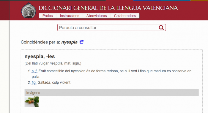 - s. f. Fruit comestible del nyespler, és de forma redona, se cull vert i fins que madura es conserva en palla.