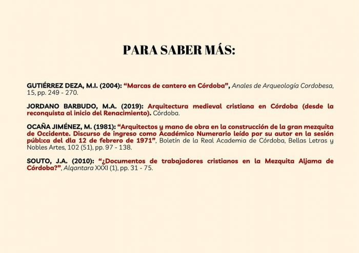 (1) Fuente principal de la entrada: Souto, J. A. (2010). Documentos de trabajadores cristianos en la Gran Mezquita de Córdoba. Al-Qanṭara, 31(1), 31-75. https://doi.org/10.3989/alqantara.2010.003